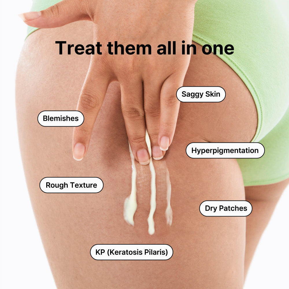 Regular use helps support softer, smoother-looking body skin. Uneven texture appears refined, and the skin feels more polished and well-conditioned.