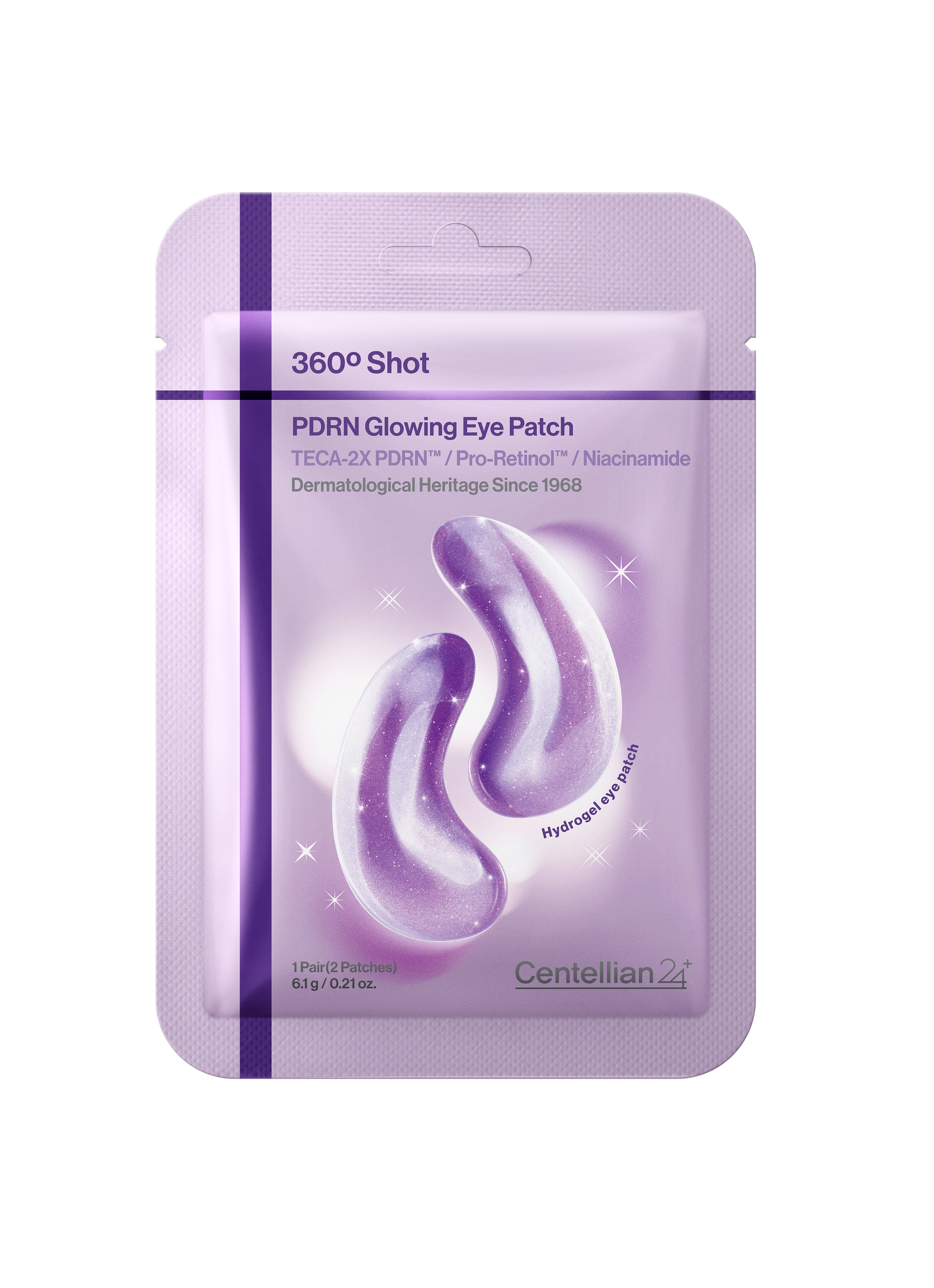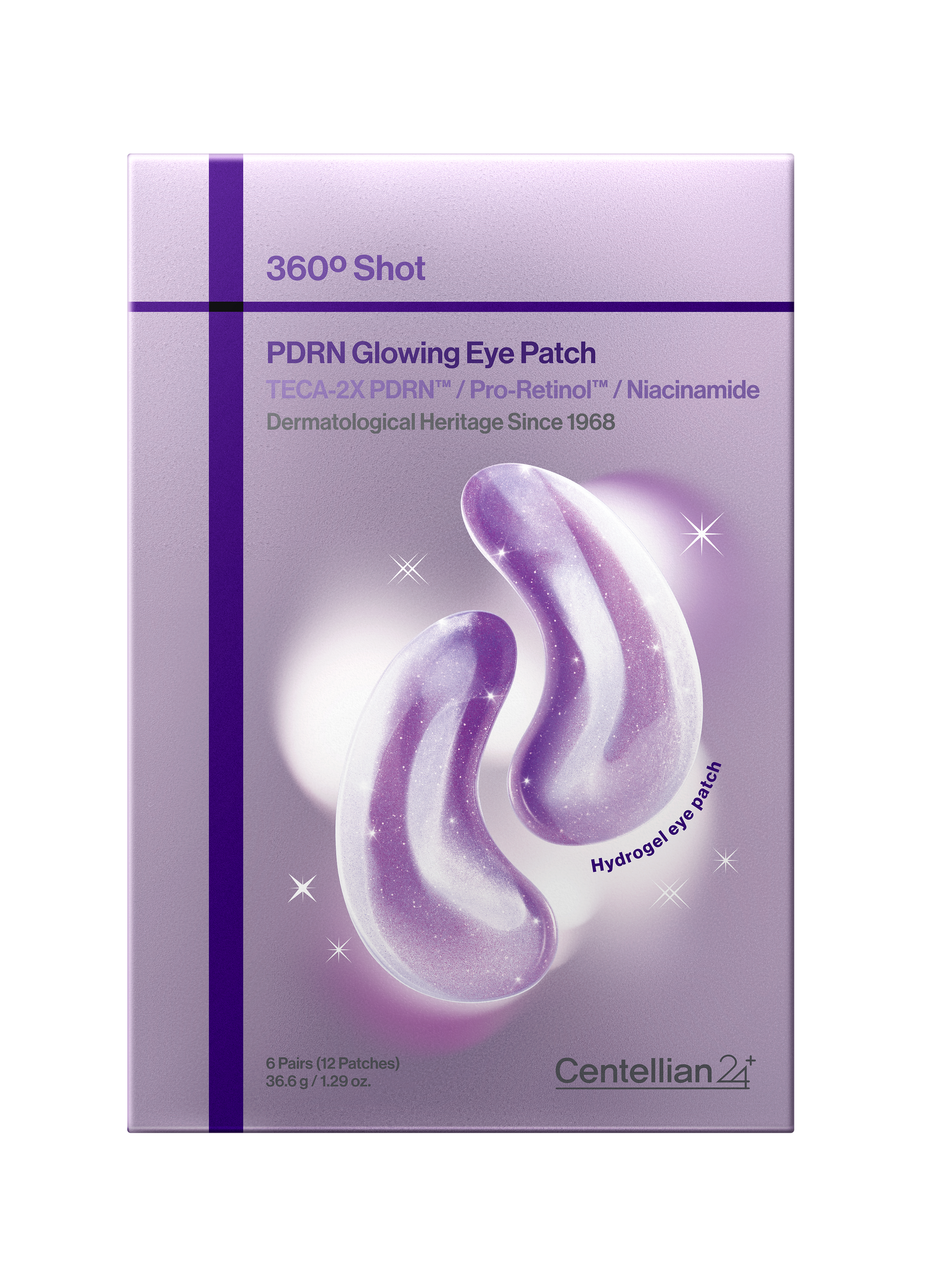 Centellian24 360º Shot PDRN Glowing Eye Patch 6 Pairs combines hydrogel patch technology with modern Korean skincare ingredients.