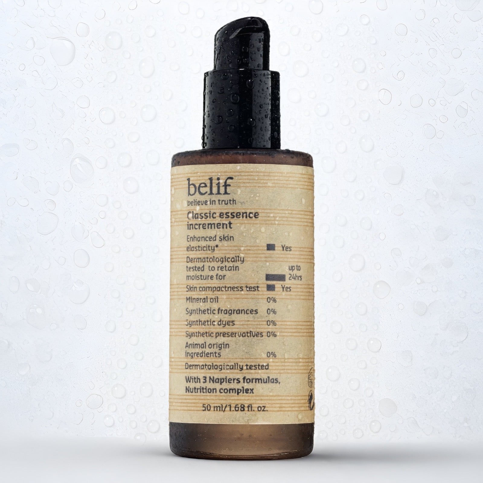 By supporting the moisture barrier, Belif Classic Essence Increment helps prevent moisture loss throughout the day while providing long-lasting hydration. Barrier support means skin stays plumper, smoother, and better protected from dryness, irritation, and environmental stress.