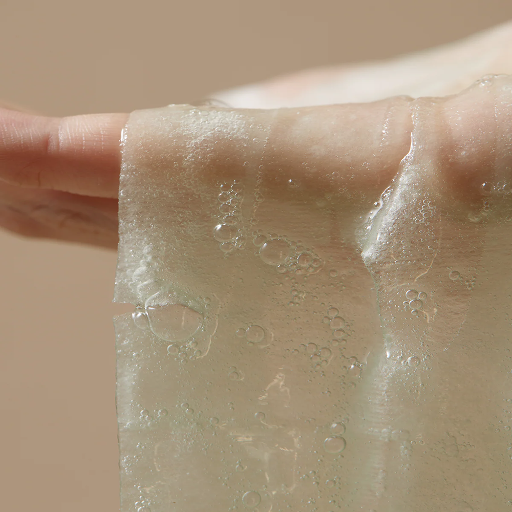 The AXIS-Y Mugwort Green Vital Energy Complex Sheet Mask is soaked in a rich, non-sticky essence that absorbs quickly without residue. The eco-friendly, biodegradable sheet fits perfectly on the skin to deliver nutrients evenly.